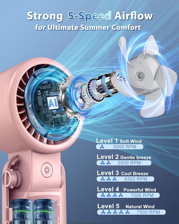 - 【5-Speed Monsoon-Ready Cooling】"Beat Delhi heat & Mumbai humidity with 6-meter powerful airflow! 5-speed modes from gentle breeze to turbo cooling, specially designed for Indian summers with instant sweat-proof makeup protection 🌬️💄