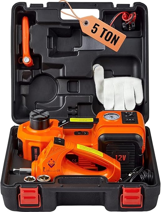 - Professional Multi-function Toolbox: The electric car jack comes with a durable and sturdy toolbox to store all your tools. If an emergency occurs midway, the red triangle on the surface of the toolbox can serve as a warning sign, just place it behind the car. Whether in your home garage, on a road trip, in the auto repair shop, on the farm, or in an emergency on the road, this tire change kit will be a must-have