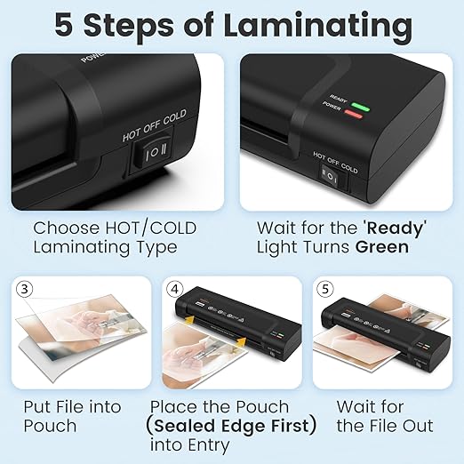 - Fast Warm-up: The A4 laminator machine with hot mode only needs 2-5 minutes to preheat, and there are Hot and Cold lamination methods.They are very suitable for various types of laminated bags.The lamination speed can reach 280mm-min.It can be used for a long time,smoother, faster, longer lasting without air bubbles, creases or curling.